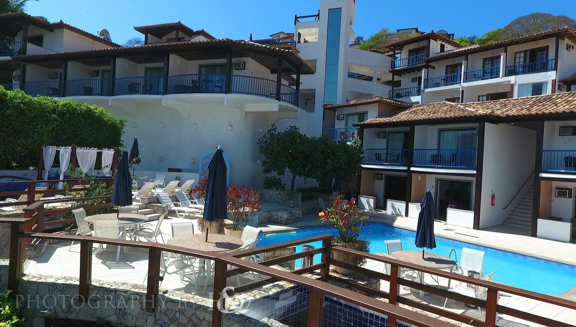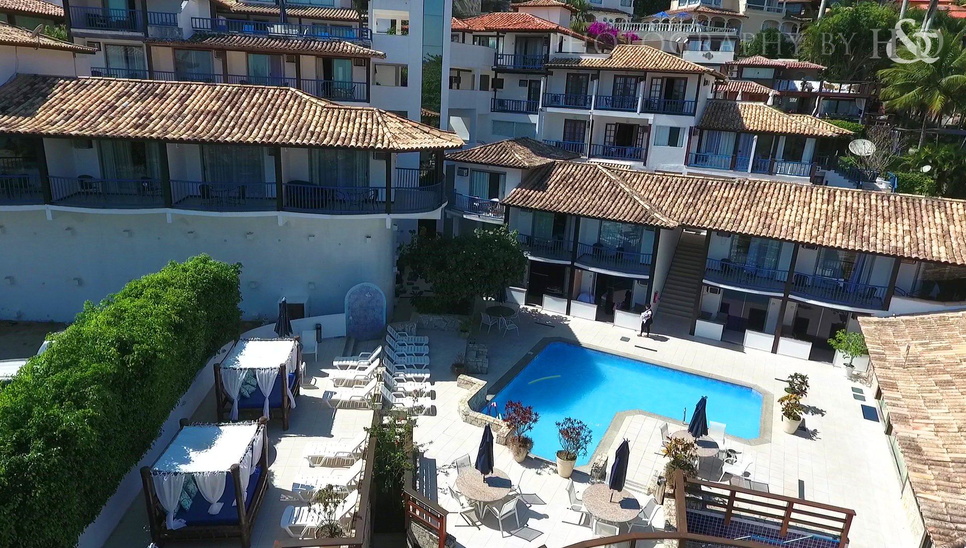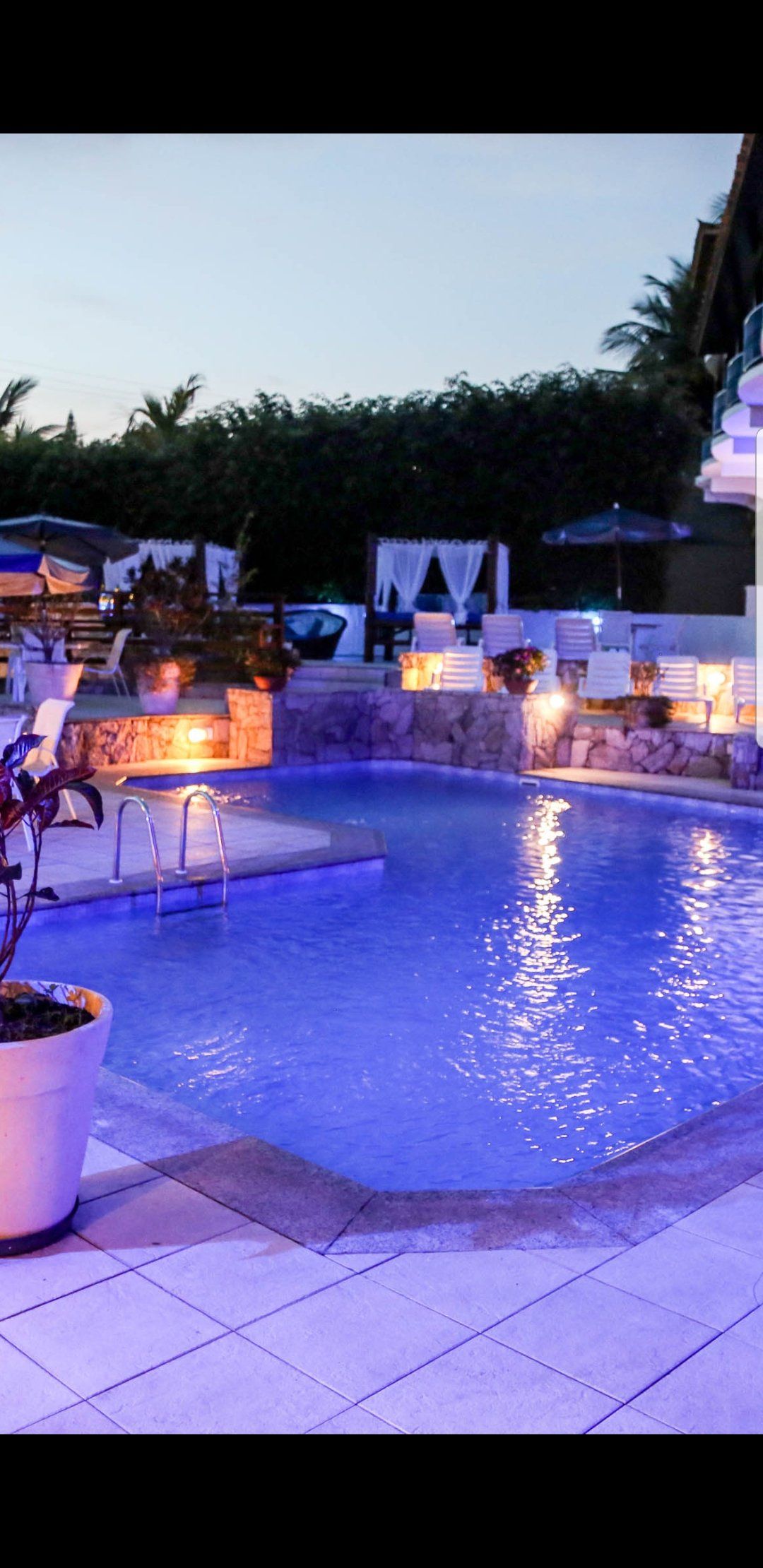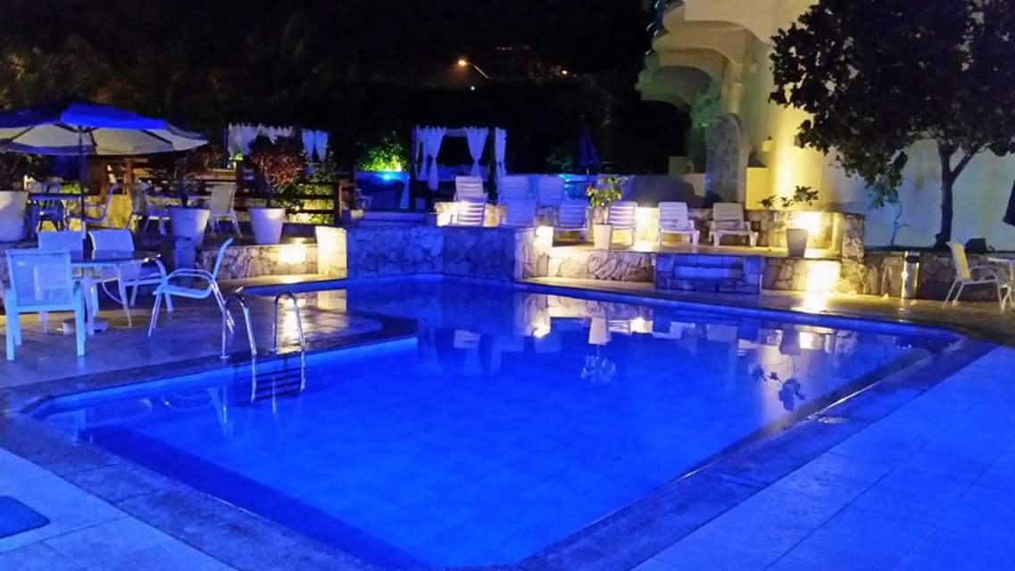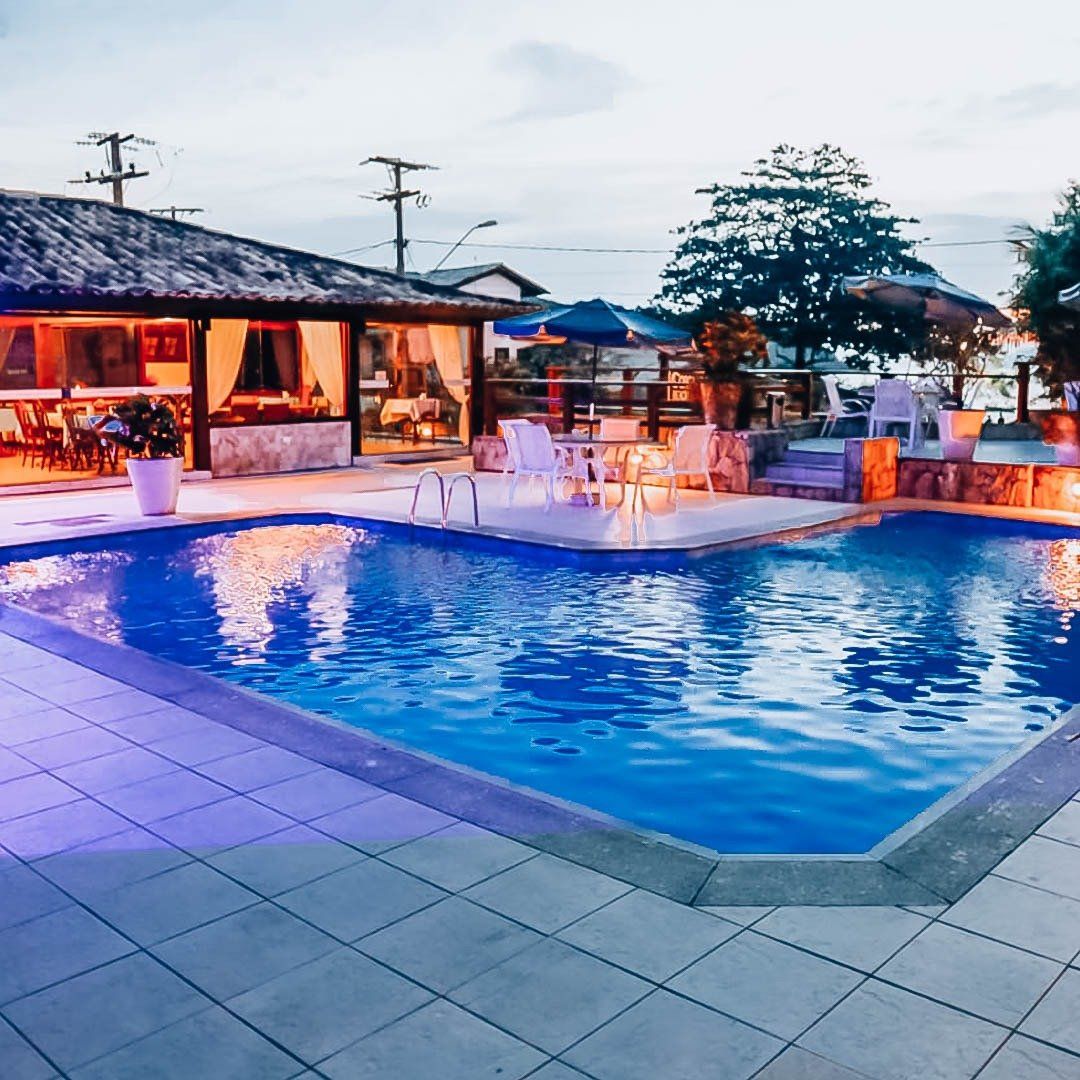 O hotel possui estacionamento com vagas limitadas, piscina, sauna seca e a vapor, elevador panorâmico, restaurante, terraço com vista para a praia, recepção 24h e área social.